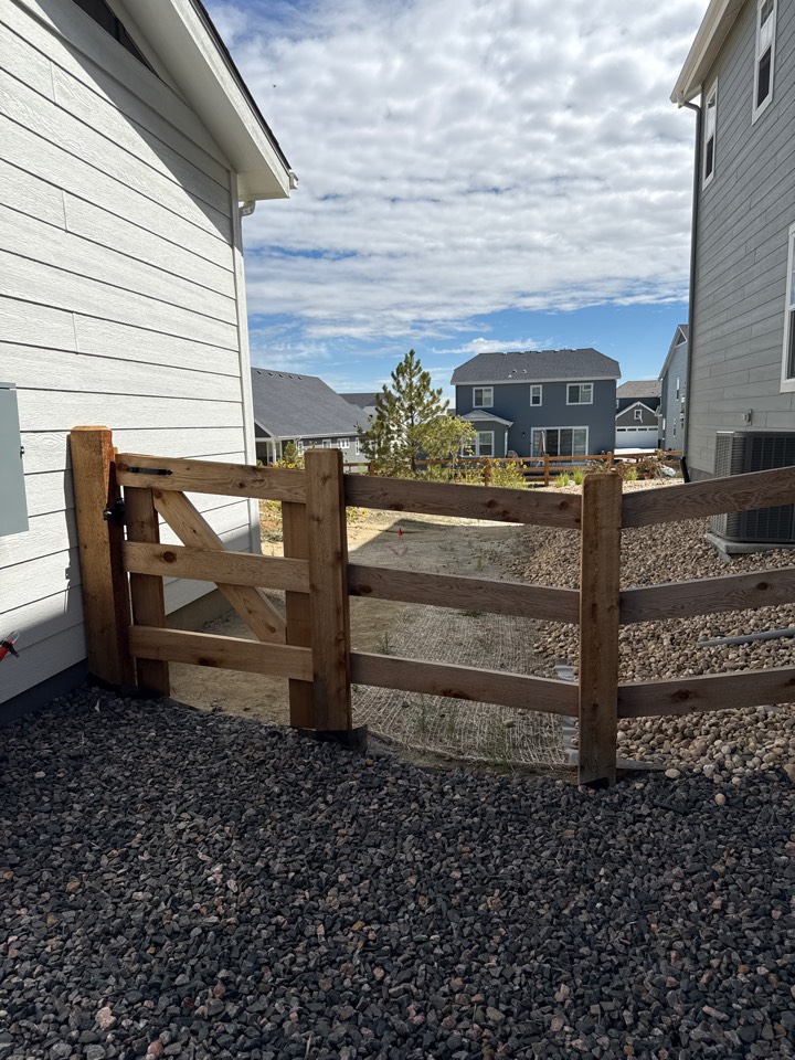 Top Rail Fence is in Castle Rock, CO doing estimates in new home communities for cedar ranch rail style fencing!