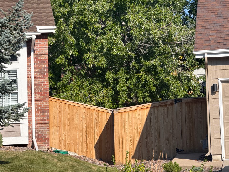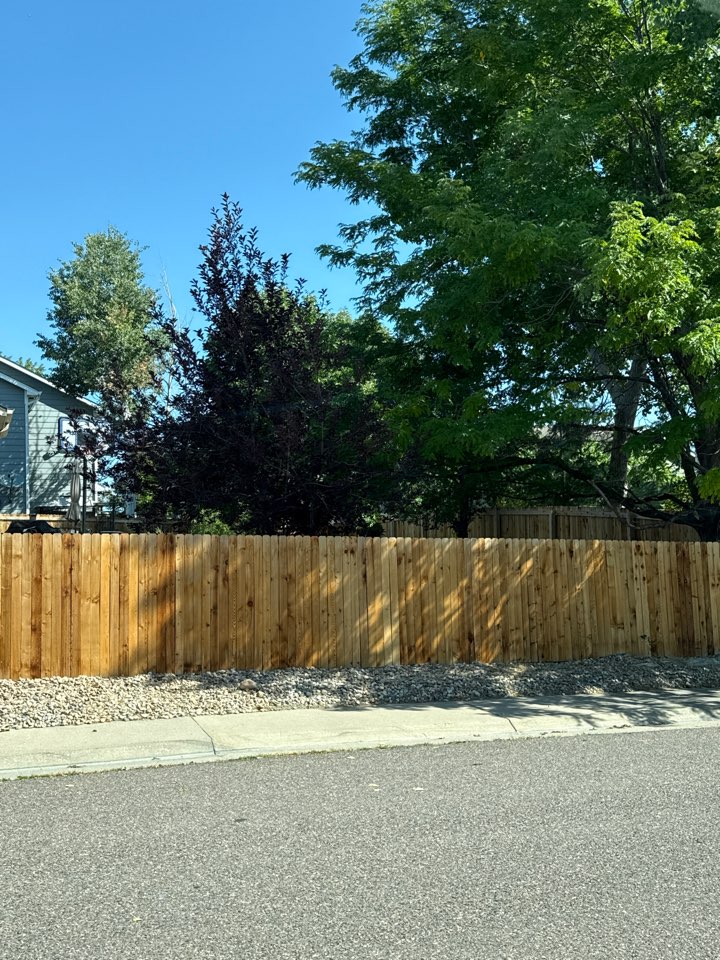 Brand new 6 foot privacy cedar fence with steel post for a customer. Second home in Longmont, Colorado.