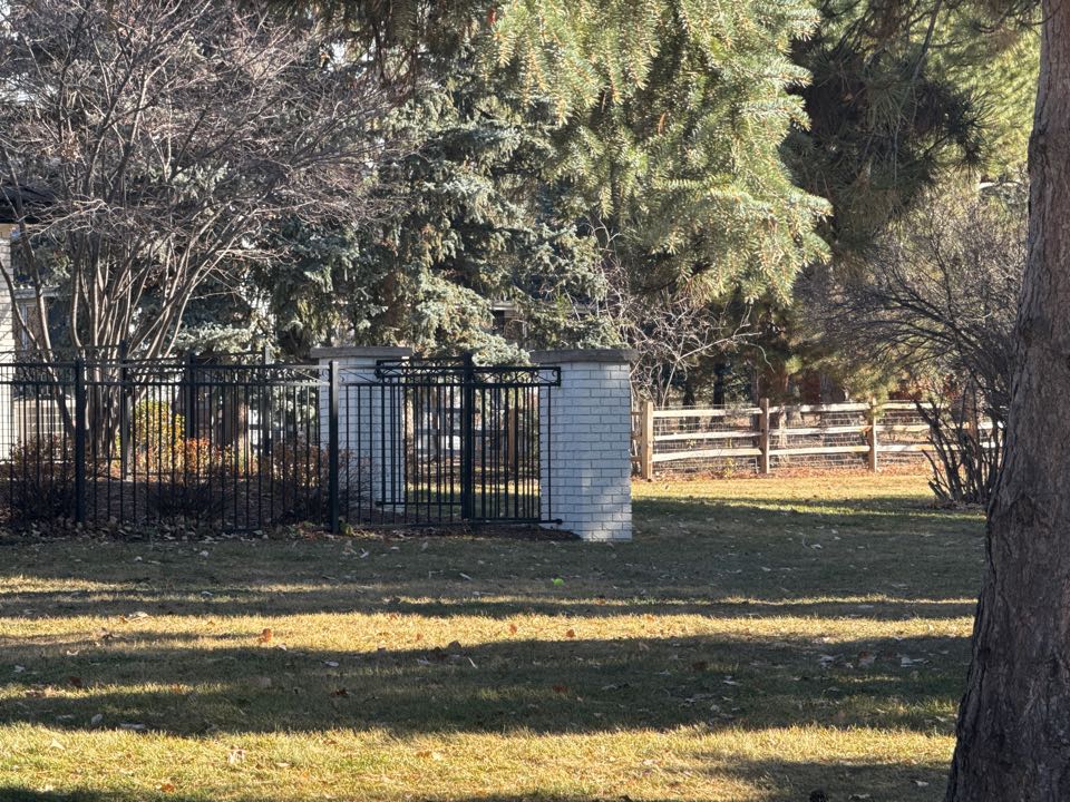 Beautiful new ranch rail cedar fence at this Greenwood Village home! Love the contrast of the gate!