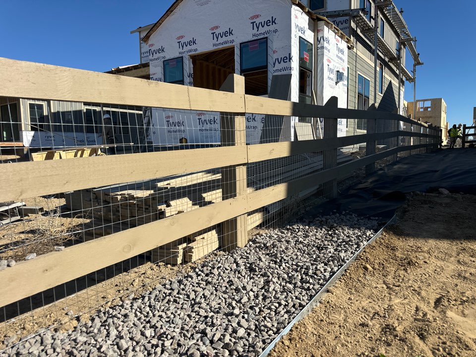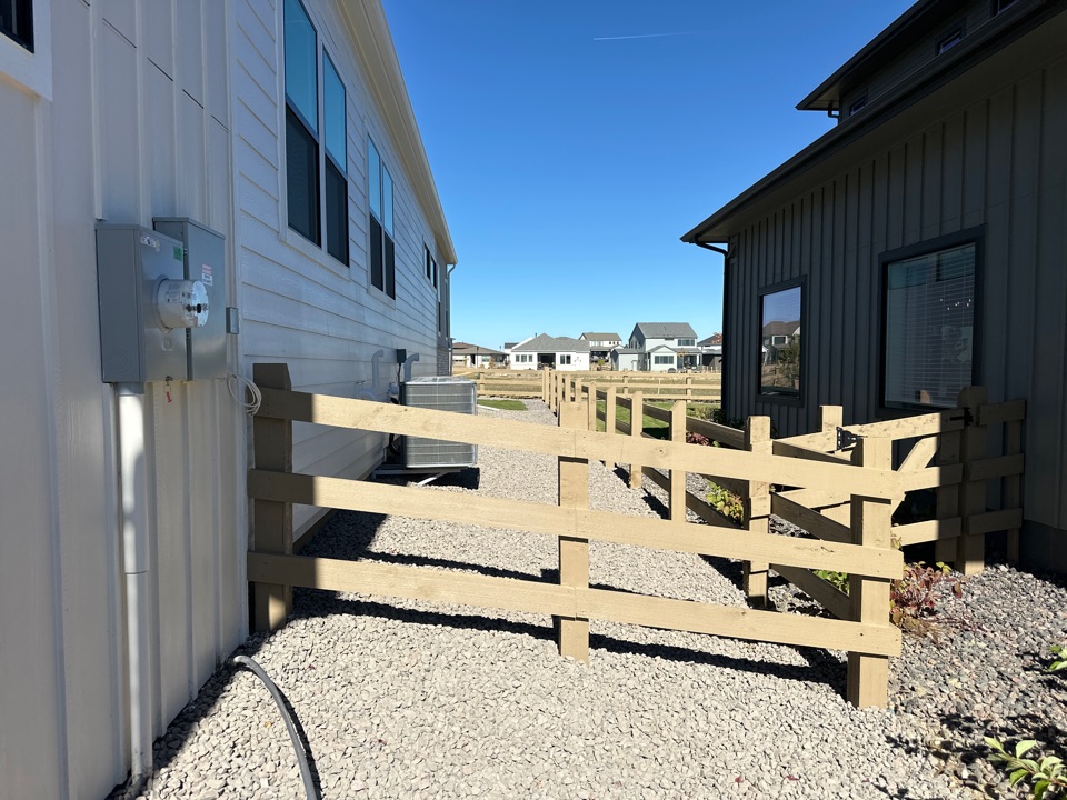 Two brand new homes in Kitchell Lake get a 4 foot tall ranch rail fence with 6 inch post timmith, Colorado