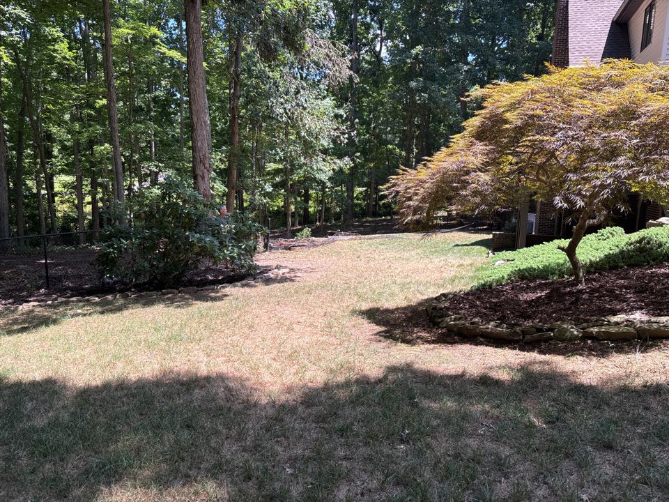 This customer had a two-tiered yard and wanted to divide the upper yard (where they live in their house) from the lower yard via a half-privacy fence. In the lower yard, they intend to build another housing unit that they can rent out. Top Rail Charlotte had no issue installing this custom wood privacy fence to suit their needs.
