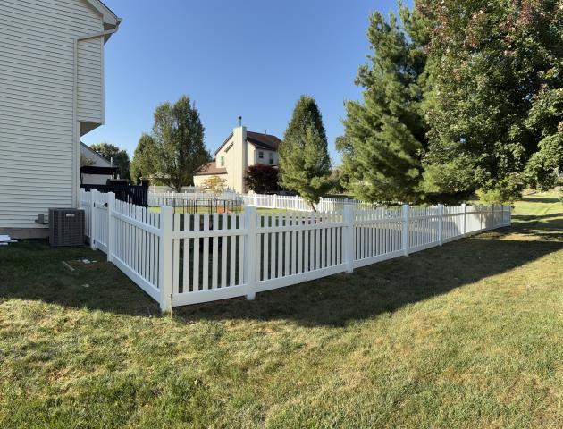 256 feet of white vinyl picket fence installed in Powell, OH.