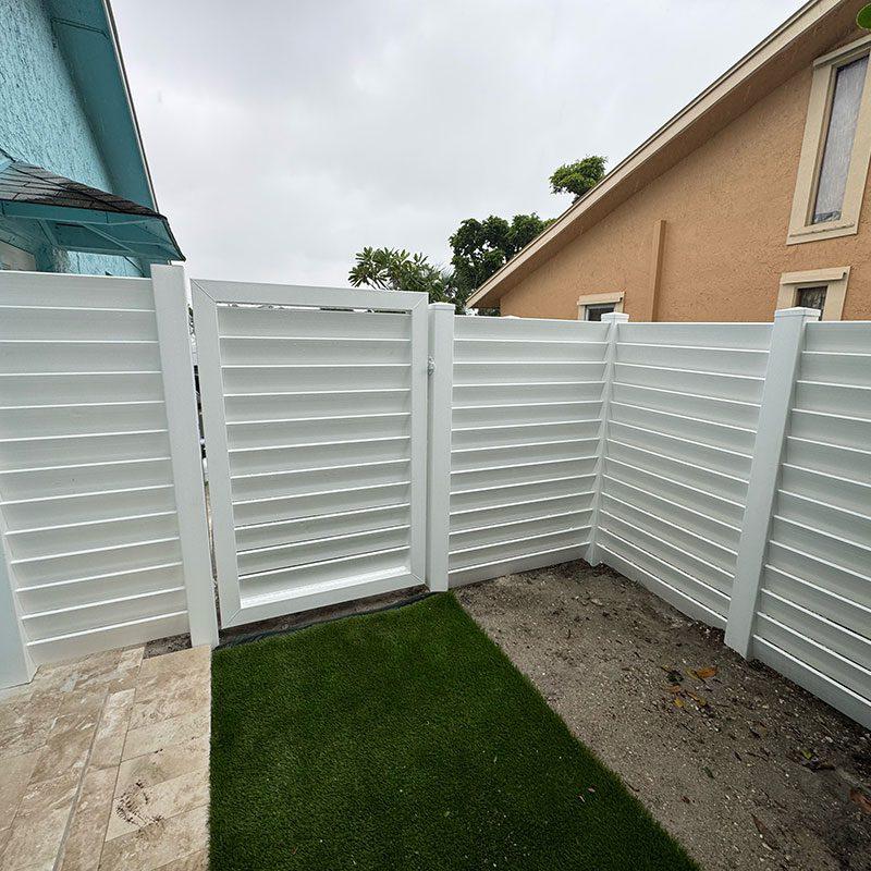 If you would like a modern-looking privacy fence that allows for excellent airflow, a louvered fence is a great fit. Its angled slats allow for breathability while maintaining privacy, making this fence perfect for those who want both style and function.